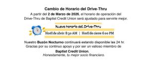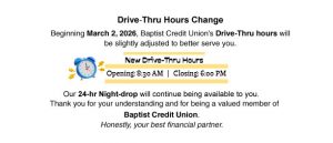 🎉Our Drive-Thru Hours are Changing on March 2, 2026! 🎉